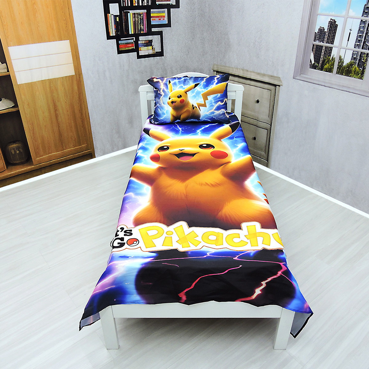 Jogo De Lençol E Fronha Pikachu Anime Kit 2pç Cobreleito