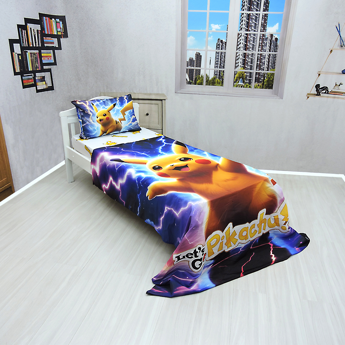 Jogo De Lençol Elastico, Cobre Leito E Fronha, 3pçs Pikachu