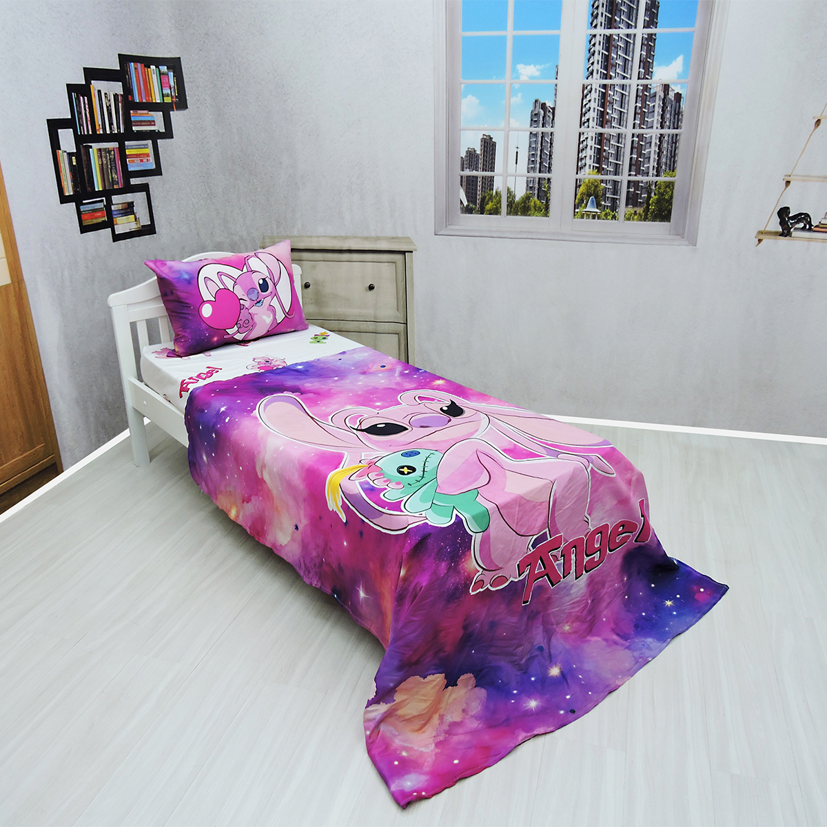 Jogo De Lençol Elastico E Cobreleito Fronha Stitch Rosa