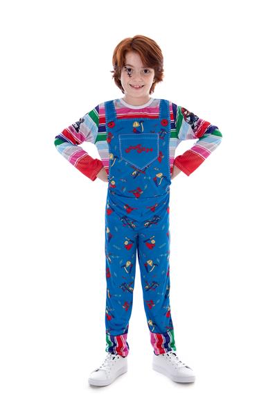 Fantasia do Chuck do classico filme de Terror Chuck Brinquedo Assassino . Chamado no Brasil de Brinquedo Assassino, o primeiro filme da franquia Chucky chegou aos cinemas em 1988. Contando a história de um boneco que está tomado pelo espírito de um serial killer e vai parar nas mãos de um garotinho, o longa-metragem foi um grande sucesso de bilheteria, conquistando logo de cara um público bastante fiel.