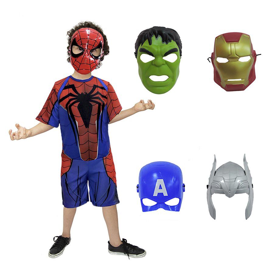 Fantasia Homem Aranha com 4 mascaras (Homem Aranha, Hulk, Homem de Ferro, Capitão America e Thor) os pequenos adoraram se vestir de seu herói favorito. Ideal para dias quentes.