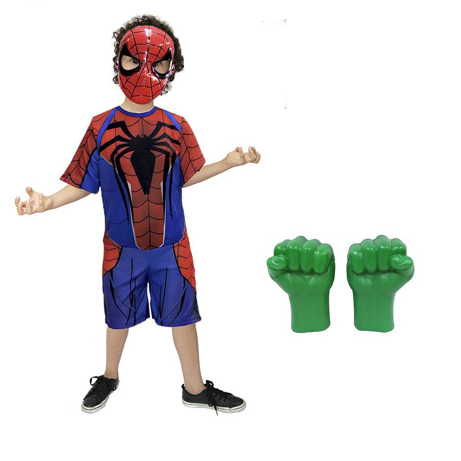 Fantasia Homem Aranha com Mascara, Luvas Do Hulk, fantasias para os pequenos se divertir, brincar e encantar.