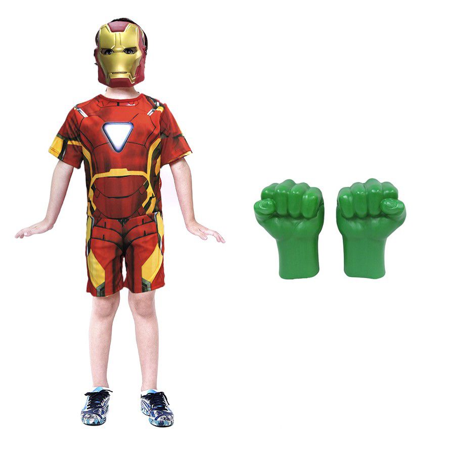 Fantasia Homem de ferro com mascara e luvas do Hulk Vingadores, com essas fantasias a diversão dos pequenos esta garantida, afinal qual criança não gosta de um super herói ?
