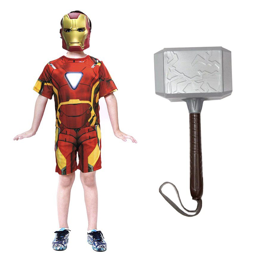 Fantasia Homem de Ferro com mascara e martelo Thor, para se divertir, brincar e encantar.