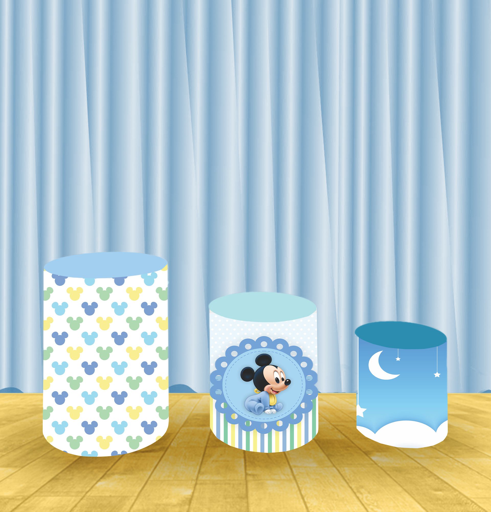 Capa Para Trio De Mesas Cilindro Mickey Baby Kit 3 Capas